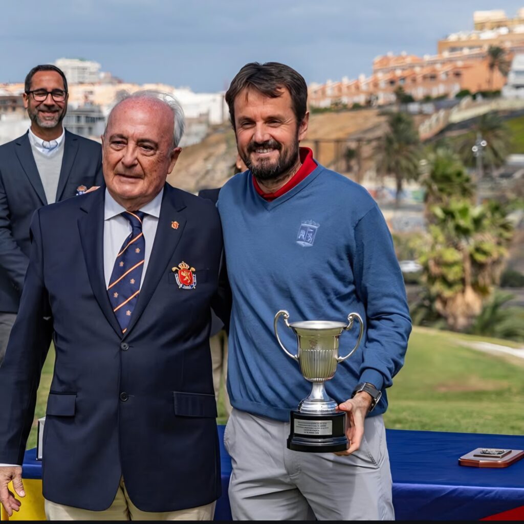 Tras varios años de subcampeonatos, este año si que ha podido ser y nuestro abonado Jose Mª Ortiz de Pinedo, se ha proclamado Campeón de España masculino de Pitch&Putt, en el tremendo campo de Las Palmeras Golf Club, uno de los mejores campos de p&p de España, con 18 hoyos y tres recorridos diferentes. Jose Mª mantuvo durante toda la competición un fantástico juego y se impuso finalmente con un resultado acumulado de 154 golpes, 8 bajo par al campo, con 3 golpes de ventaja sobre el canario Antón Pérez Medin y 4 sobre Jesús Soler Córdoba.